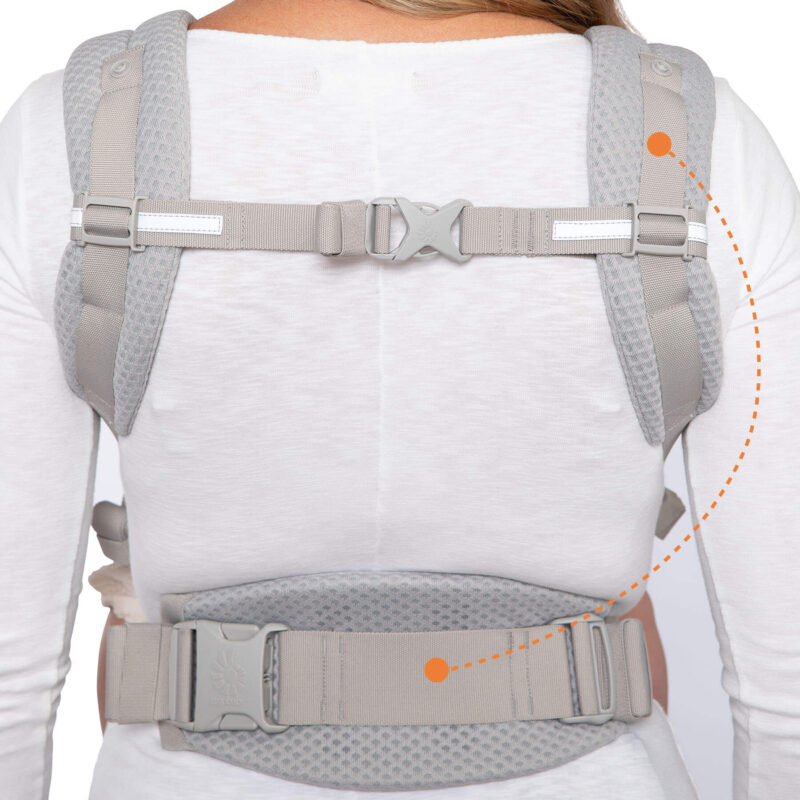 エルゴオムニブリーズは、厚いパットの入った肩ベルトとサポートつきウエストベルトでママパパの肩や腰ににかかる重さを分散してくれます。