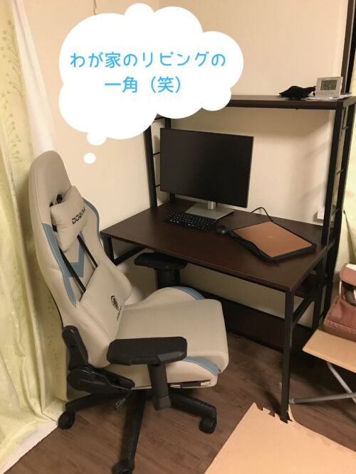 ちなみに、リビングの一角にDowinx ゲーミングチェア LS-66684Dを以下のように置いていますよ^^