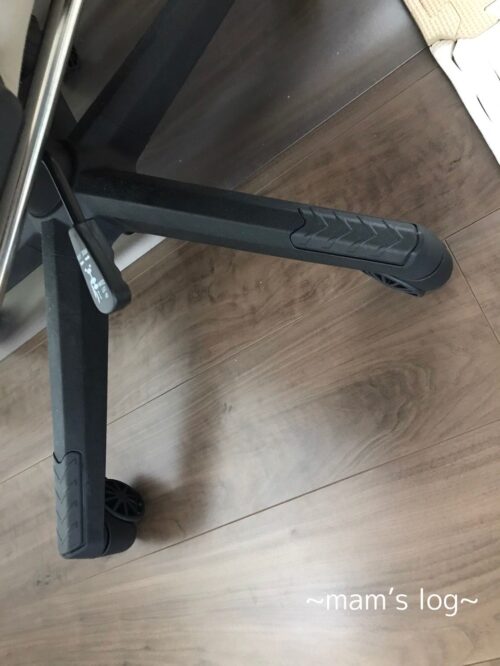 女性である筆者も、キャスターをレッグフレームに取り付けるのがかなり硬くて苦労しました…^^;