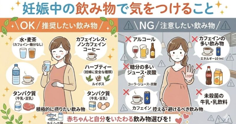 妊娠中は飲み物にも注意が必要で、特にカフェインの摂取量に気をつけることが大切です。