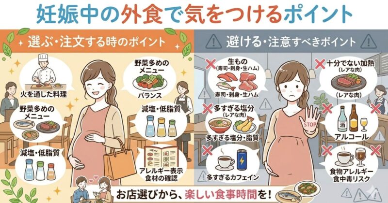 妊娠中でも外食は可能ですが、メニュー選びがとても重要になります。