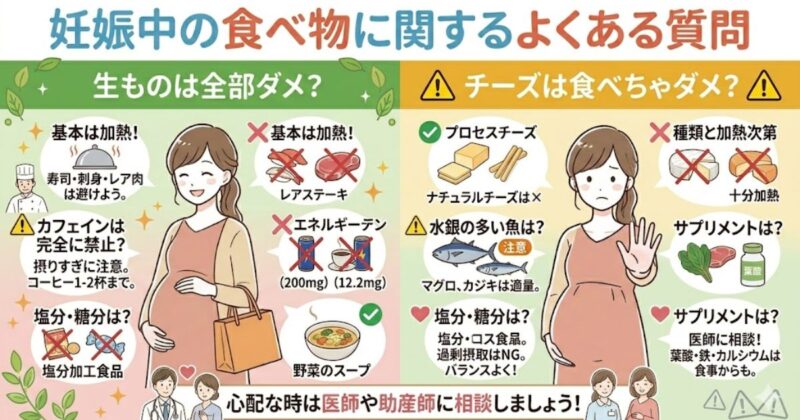 ここでは、妊娠中の食べ物に関するよくある質問についてまとめました。