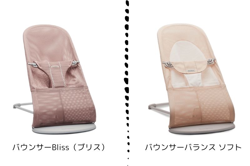 ベビービョルンバウンサーの最新モデル、Bliss(ブリス)とバランスソフトのデザインを比較してみました。