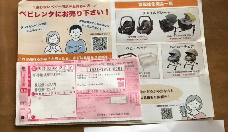 ベビレンタは商品と一緒に着払いの伝票が入っています。