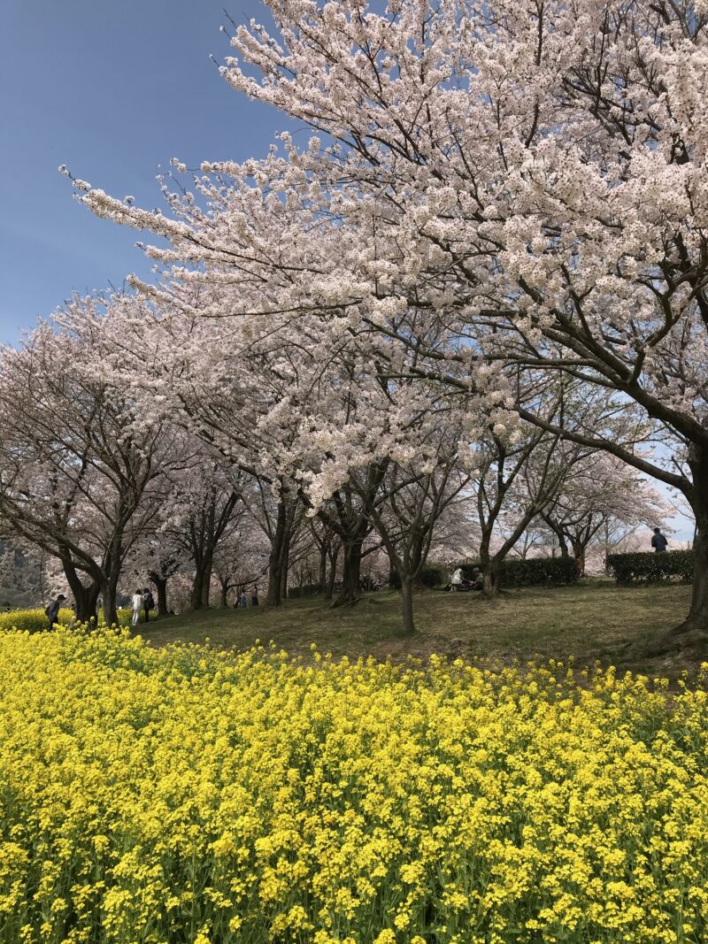 2025年4月13日に桜を見に行ったときは、菜の花も開花のピークを迎えていたので、桜も菜の花の満開の状況でしたよ♪