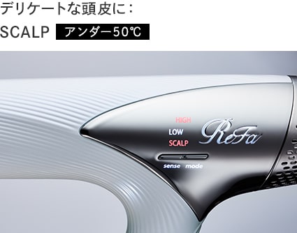 - SCALPモード:アンダー50度の温風。デリケートな頭皮を乾かすのにおすすめです。