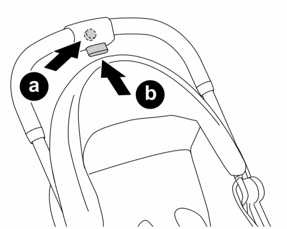 ❸ハンドルを持ち、(a)の開閉ボタンを押しながらフレームを進行方向に傾け、(b)のボタンでフレームロックを解除します。