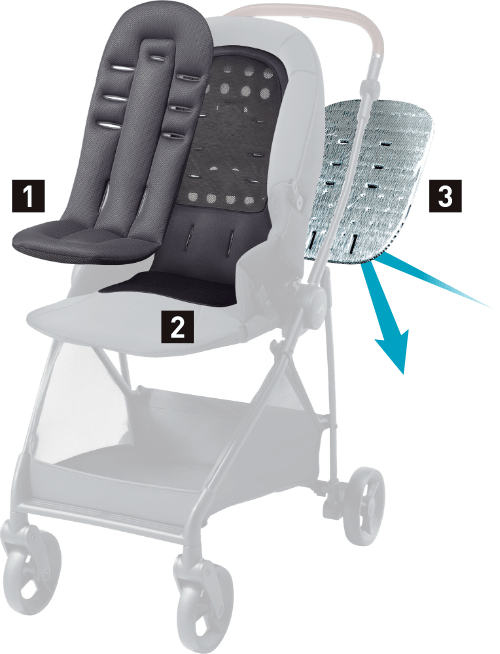 新生児用インレイやコンフォートインレイを取りはずすと、より通気性に優れたベビーカーになりますよ♪