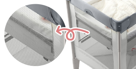 ベットの全側面がメッシュ素材になっいるため、パパママが横から赤ちゃんの様子をしっかり確認することができます。
